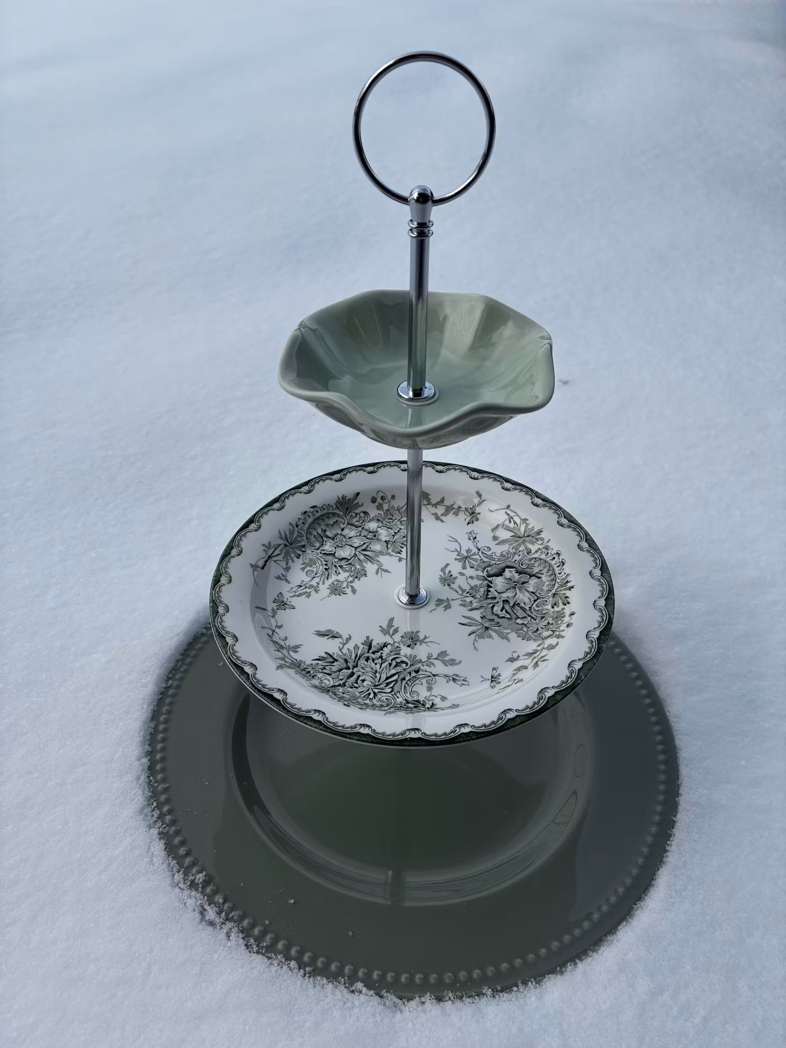 Et nydelig etasjefat der klassisk svensk porselen møter moderne former.