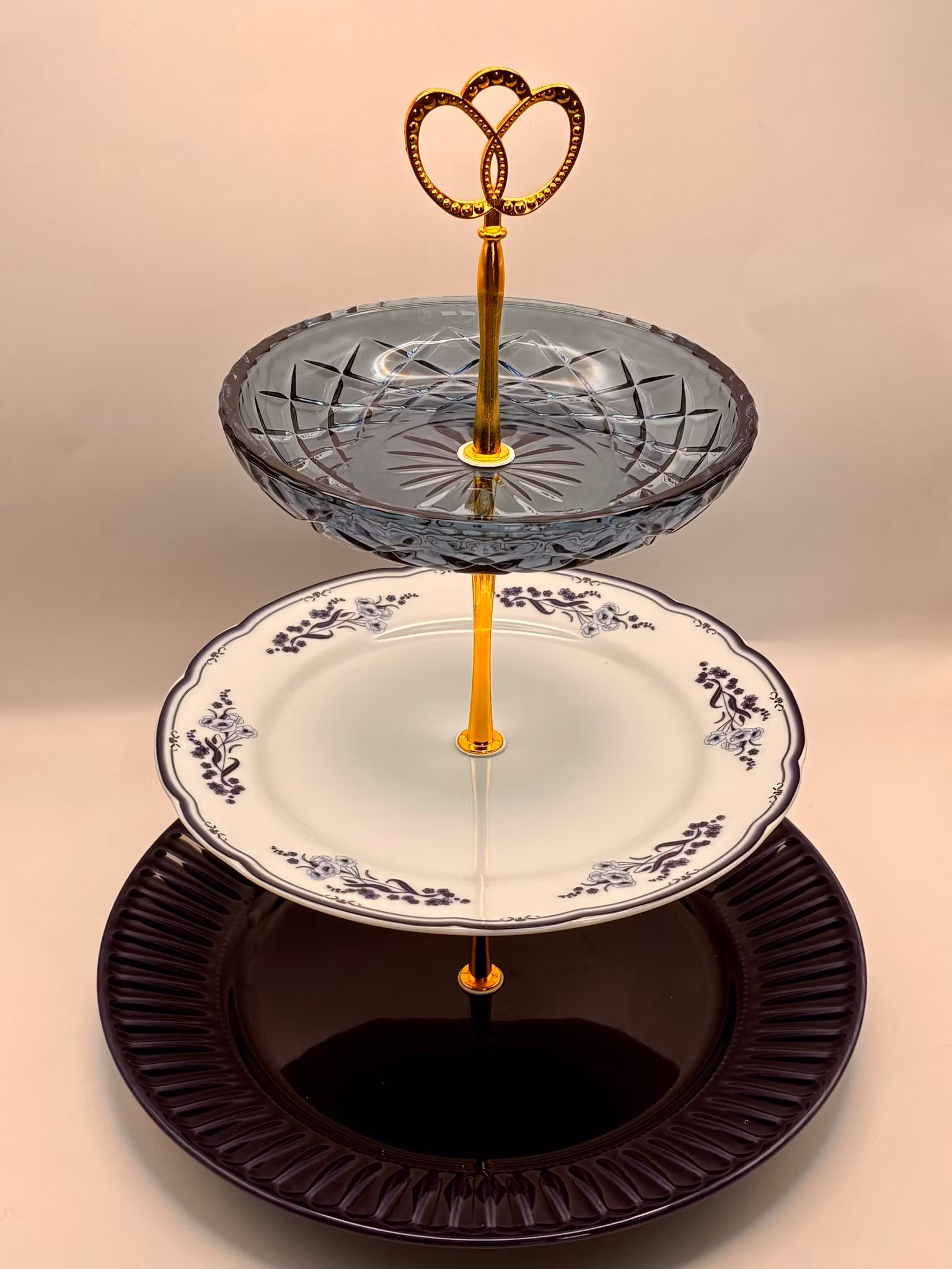 📏 Ca. høyde: 34 cm. Nederste tallerken er ca ø26,5cm.