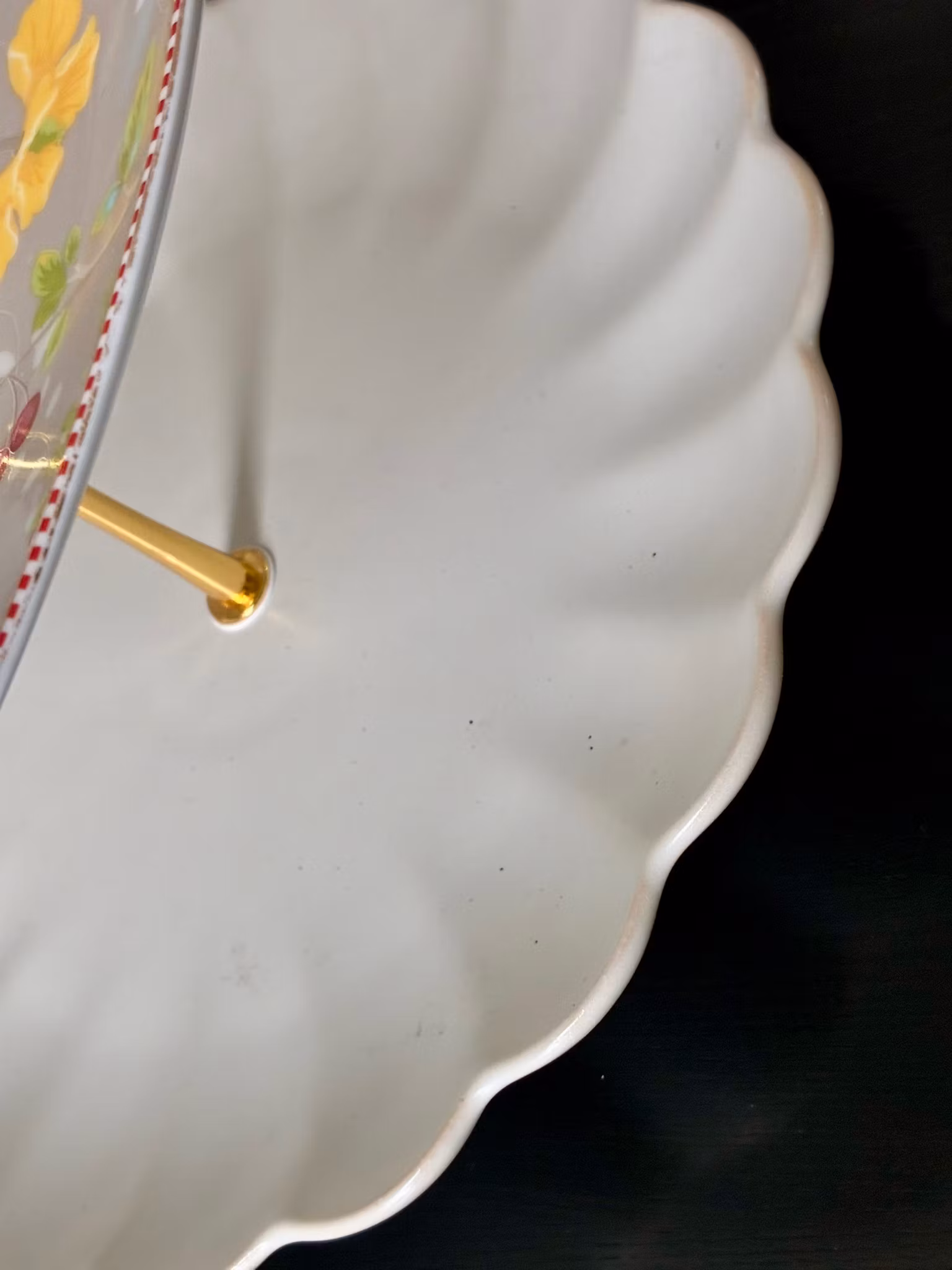 Det er kombinert med myke, klassiske fat i hvitt – både nytt og vintage – og toppet med en elegant gullfarget stang med hjertedetalj. Resultatet? Et fat som føles både nostalgisk og friskt på samme tid.