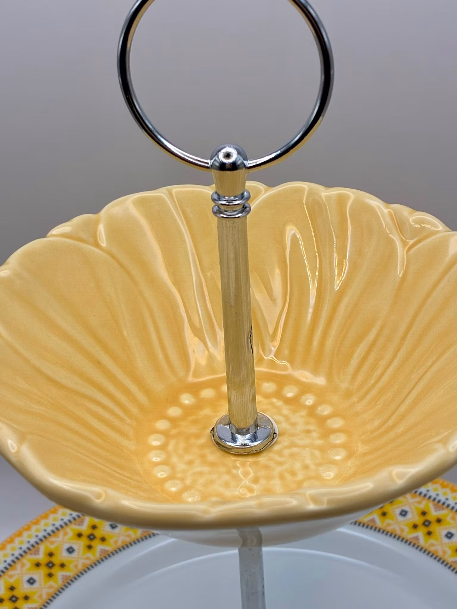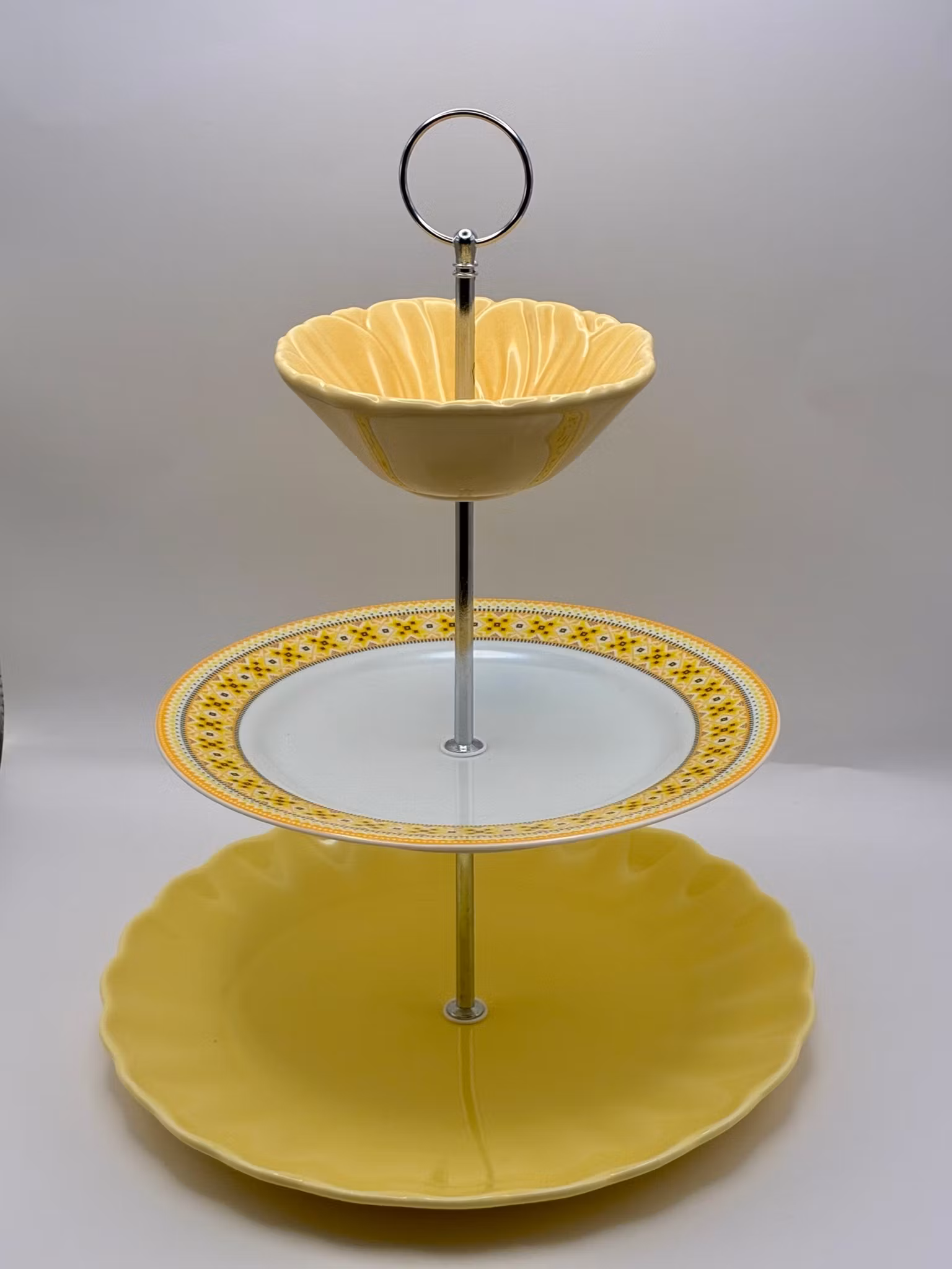 ✨ Detaljer: Tre etasjer i keramikk/porselen, sølvfarget stativ